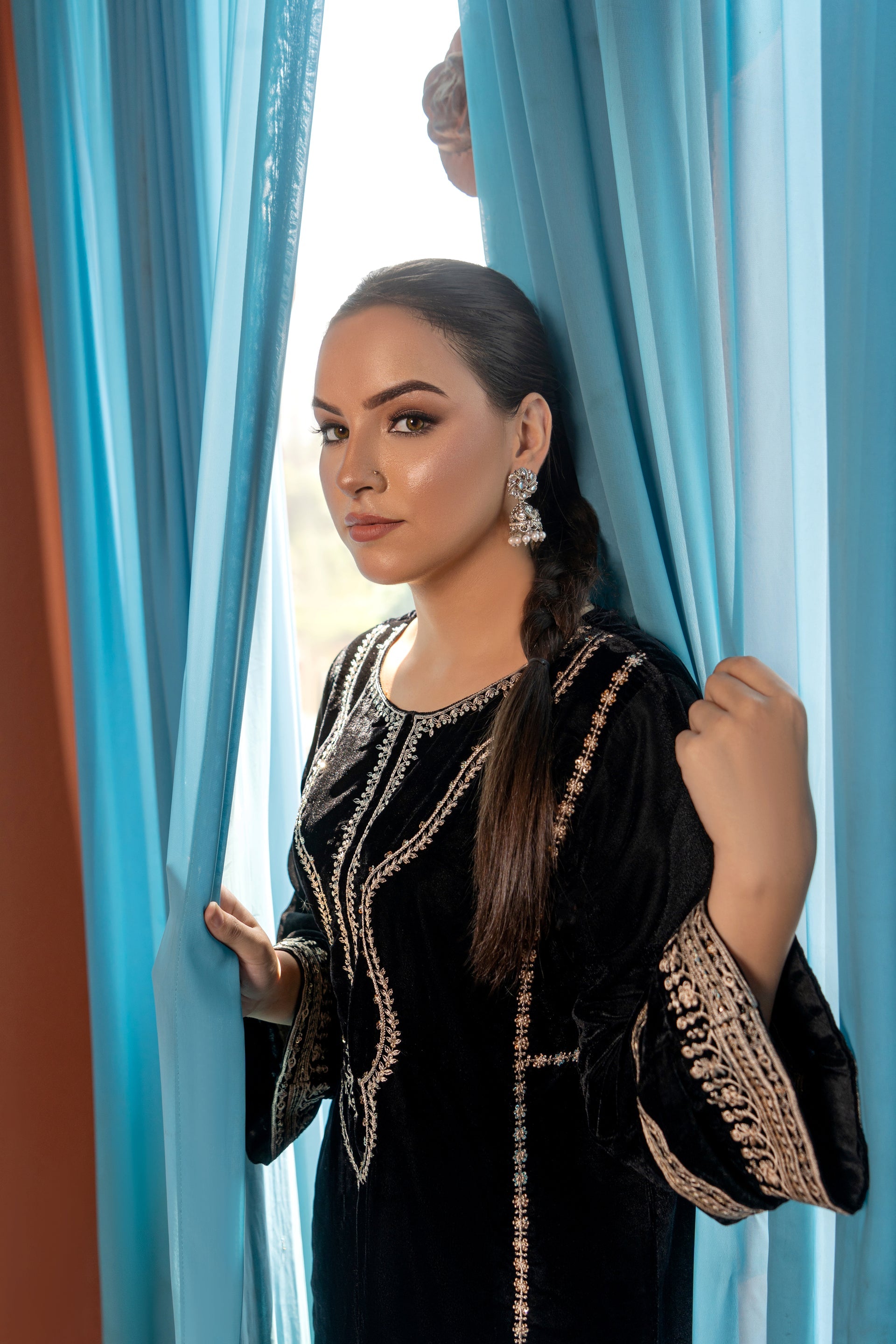 - Velvet Sequence Embroidered Sleeves